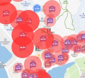 예시 자료를 서울 지역으로 하고 싶었으나, 부동산이 너무 많아서 설명하기에 적절하지 않다고 판단했습니다. 아래에서는 부산을 예로 보여드리겠습니다.