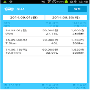 그리고 가계부처럼 주유비도 자동으로 입력을 해줘요. 신기하죠?