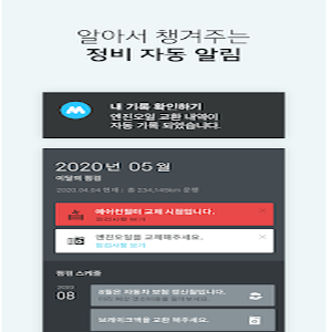 현대차나 기아차를 타고 있다면 연동시켜서 주행거리까지도 자동으로 입력을 해주는데 주행거리에 따라서 서비스 받아야할 내역도 알려주니 차를 관리하기 좋겠죠?