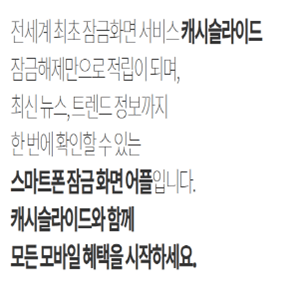 캐시슬라이드와 거의 비슷한 어플이지만 만보기 기능이 추가되었고, 둘 중 하나의 어플만 설치해서 사용할 수 있습니다.